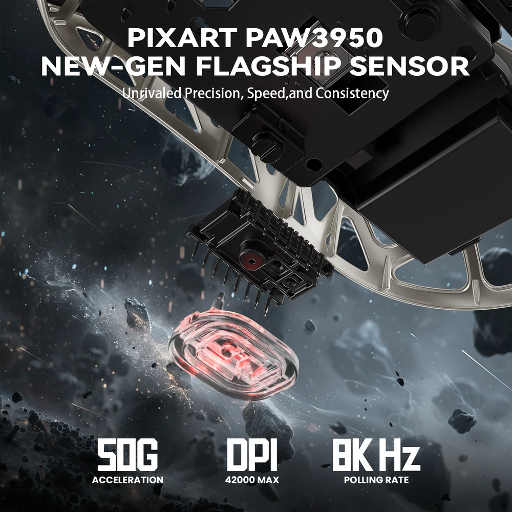 • خفيف الوزن 46 غرامًا • سبائك المغنيسيوم • مستشعر ألعاب PAW3395 • اتصال ثلاثي الأوضاع • 80 مليون نقرة • مشفر TTC • برنامج تشغيل مُطور ذاتيًا • وضع النوم الذكي • تصميم مريح