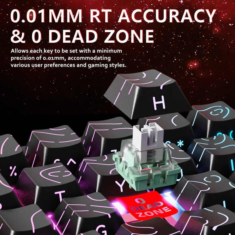 • دقة تحرّي 0.01 مم، ونقطة ميتة صفرية • معدل تحرّي يصل إلى 8000 هرتز • أغطية مفاتيح PBT • نقاط تشغيل قابلة للتعديل (0.1-3.4 مم) • خاصية النقر السريع وتحديد أولوية آخر ضغطة مفتاح • زر واحد، حركات متعددة (DKS) • محرك ويب وذاكرة مدمجة • إضاءة خلفية RGB رائعة