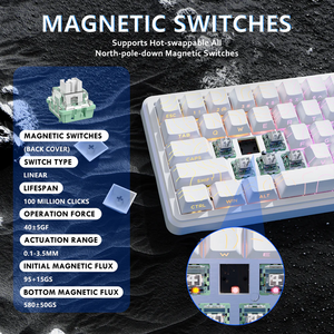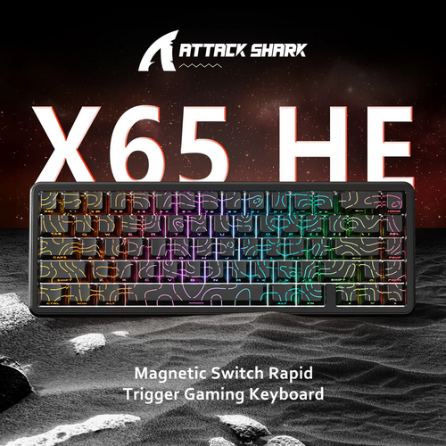 لوحة مفاتيح ATTACK SHARK X65 HE المغناطيسية سريعة التشغيل لوحة مفاتيح ألعاب سلكية بنسبة 65%، بمعدل تحرّي 8000 هرتز، ودقة RT 0.01 مم، وأغطية مفاتيح PBT، ومحرك QMK، وإضاءة RGB
