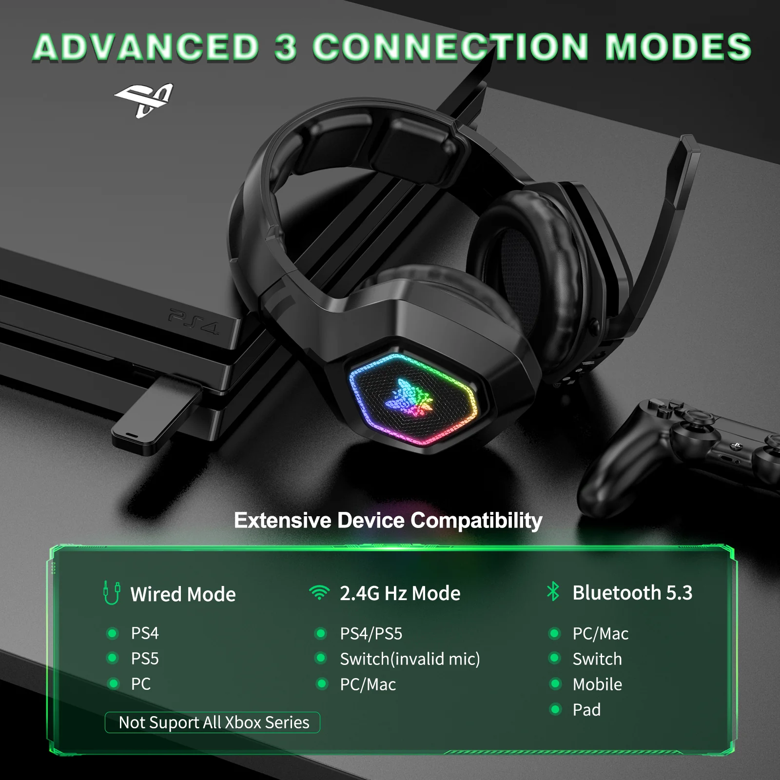 توصيل أقل، تشغيل أكثر - مدخل مزدوج من 2.4 جيجاهرتز وبلوتوث: تعتمد سماعة الألعاب اللاسلكية تصميم الوضع المزدوج عالي الأداء. مع دونجل USB 2.4 جيجاهرتز، وهو متين للغاية، وتأخر <30 مللي ثانية، ومصمم بشكل مثالي للاعبين. يعمل وضع البلوتوث فقط مع الهاتف والكمبيوتر المحمول وجهاز Switch. ووضع سلكي 3.5 مم (يدعم الموسيقى والمكالمات فقط).