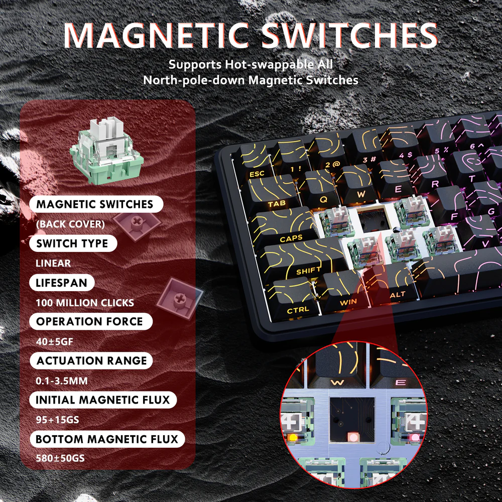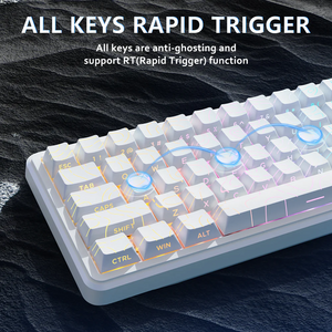 لوحة مفاتيح ATTACK SHARK X65 HE المغناطيسية سريعة التشغيل لوحة مفاتيح ألعاب سلكية بنسبة 65%، بمعدل تحرّي 8000 هرتز، ودقة RT 0.01 مم، وأغطية مفاتيح PBT، ومحرك QMK، وإضاءة RGB